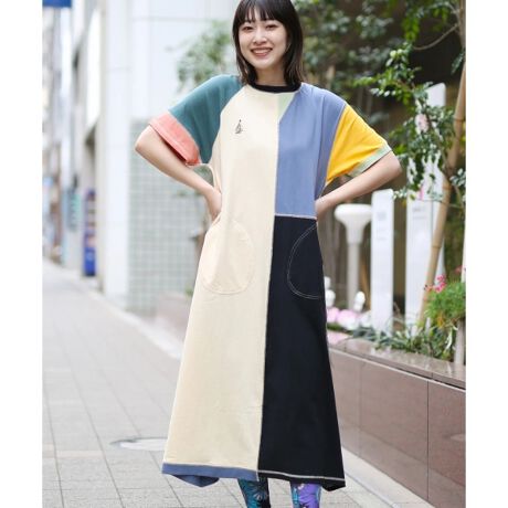 ベースは定番のTシャツワンピースなので、気兼ねなくコーデに取り入れやすいのがポイント。