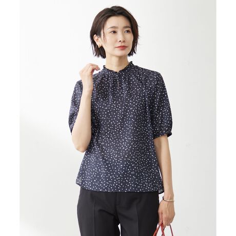【洗える・イージーケア】スパンローンランダムドット ブラウス