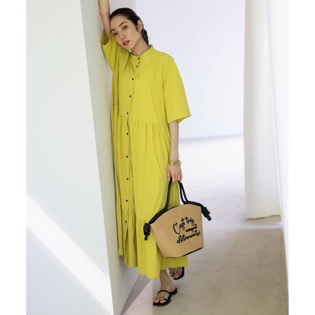 ■デザインたっぷりのギャザーをあしらった切り替えからふんわり広がるシルエットが女性らしいワンピースは、素材感とバンドカラーが甘すぎず軽やかな印象に仕上げています。絶妙な切り替え位置とシルエットは、1枚着はもちろん羽織としてパンツスタイリングとの相性も◎。通常のティアードディテールと違い、カジュアルすぎない大人っぽい印象に仕上げています。