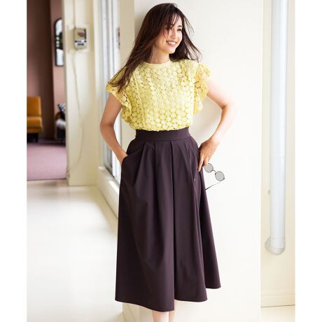 ズボンなのにスカート見えするので上品に着こなせる。素材も涼しく、暑い日でも足にまとわりつかないのが良い。