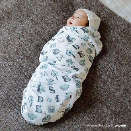 モノグラム調のテキスタイルがポイントの大判ガーゼおくるみ、