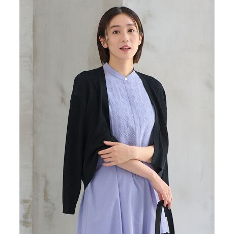 夏に欠かせないメッシュカーディガン■デザイン表情のあるメッシュ柄のニットカーディガンです。首回りをすっきりとさせ、ボタンがなくさっと羽織れるので、カットソー、ブラウスはもちろん、ワンピースの上にも合わせやすいデザインです。清涼感のある素材で、軽量なので持ち運びもしやすく、冷房対策にも重宝します。■素材肌触りの良いセミマットなPIMA綿に合繊素材を巻いた軽くすっきりとした質感のコットンブレンド糸を使用しています。さらりとした清涼感のある肌触りで、真夏まで着て頂ける素材です。