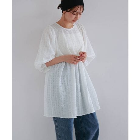 チェック柄 ふくれジャガード ペプラムチュニック