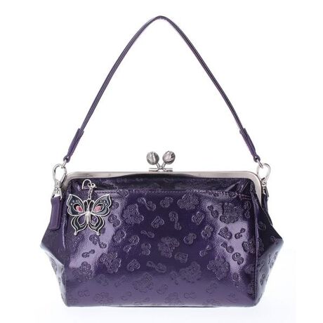 [型番:316921]エナメルにエンボスした素材を使った軽量シリーズ。バラの金具とバタフライチャームがポイントです。シンプルで使いやすく、毎日のコーデにも合わせやすいデザインです。・重さ:440g ・外ポケット数:2 ・内ポケット数:2