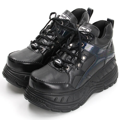 柄を入れたオリジナルソールは存在感大、スポーティーな切り替えパターンを使用したクラシックデザインの厚底スニーカー。
