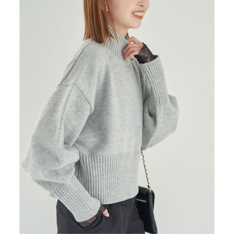 ・ワイドシルエットのハイネックプルオーバー。