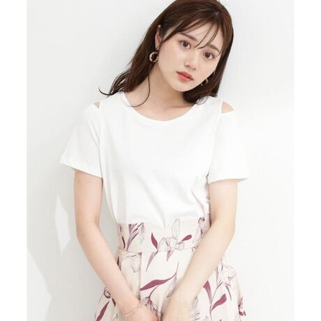 【商品特徴】ちらっと肌見せするオープンショルダーデザインがポイントのTシャツ。シンプルなデザインながらも、旬な肌見せディテールがレディライクな印象に。ボトムスに裾をインすれば、バランス良く決まります。【スタイリング】柄スカートと合わせれば、フェミニンな着こなしが完成します。