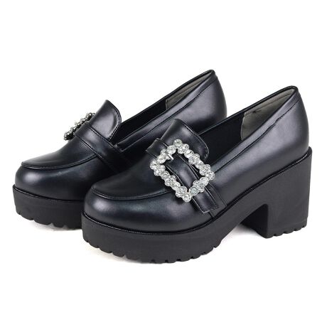 ビジュー/ビジューパーツ/ビジューバックル/ビジューローファー/厚底/トラックソール/厚底ローファー/韓国/モード/軽量