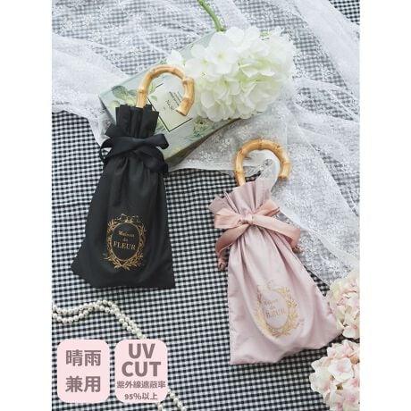 【晴雨兼用】【UV CUT】ブランドロゴをゴールドのプリントであしらった、エレガントな折りたたみ傘。ハンドル部分もバンブー素材になり、高級感があります。持ち運びしやすい、巾着タイプのカバーケース付きなのも嬉しいポイント◎UVカット素材を使用しており、晴雨兼用で使えるのも魅力です。ご自身用にはもちろん、ギフトとしても喜ばれること間違いなし♪--------------------------紫外線遮蔽率:95%以上紫外線を通しにくい素材を使用しています。