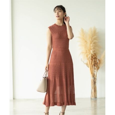 ・透かし編みが華やかなニットワンピース。