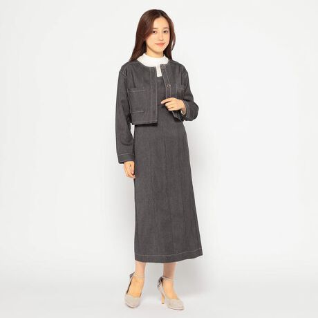 シングルでも使えてお得なワンピース×ジャケットの2点セットです。カジュアル顔のデニム素材をIラインワンピースとノーカラージャケットできれいめに仕上げました。インナー次第で色んなテイストで楽しめるアイテムです。