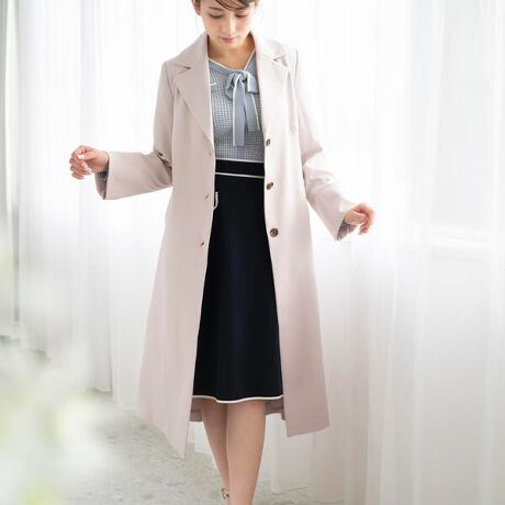 シングルボタンが上品な印象のロングコートです。ウエスト部分はスッキリとしており、バランスの良い1着。トレンド問わずに愛用していただけるアイテムです。