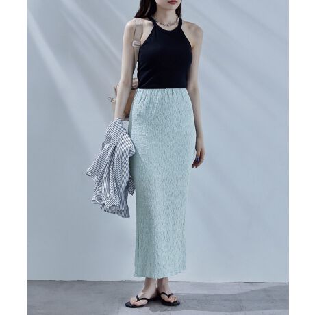 etoll. エトル 伸縮性ある柔らかなジャガードカットソー生地が目を引く、Iラインのタイトスカート。