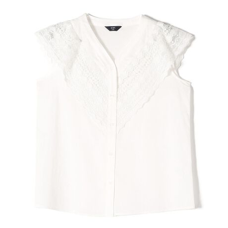 たっぷりとした分量のレース襟が目を惹くシャツブラウス。