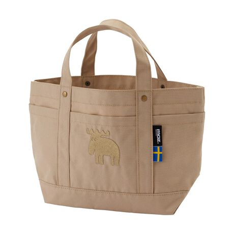 可愛らしいエルクの刺繍が印象的なワンポイント!北欧ブランド「moz(モズ)」の人気シリーズに「か・る・いトート(Mサイズ)」が仲間入り。【片腕にふんわり軽い使い心地】絶大な人気を誇るmozの定番「帆布トート」を、可愛らしいデザインはそのまま軽量素材でリニューアル!片腕にふんわり持てるシンプルで小ぶりなMサイズ。【充実のアウトポケット】フロントと背面、それぞれに3つのオープンポケット付き。持ち手のテープ生地で仕切られた構造で、パスケースやハンカチなど、色々自分好みにしまえちゃう!【小物の出し入れスムーズ】開口部が楕円状に大きく広がり、小物が楽に出し入れできる広めのマチ幅設計が使いやすさのヒミツ。<br>※ベージュ、カーキ、ブラック、グレーのみ、開口部にスナップボタンが付いたデザインです。【ランチトートにぴったり】メインルームは小さめのランチボックスが平置きできるサイズ感!さらに、500mlのペットボトルがスッキリと縦置きにできるボトルホルダー付き。【ミニマル派に嬉しいサイズ】小ぶりに見えて、マチはたっぷり。長財布やB5サイズの手帳、化粧ポーチなどお出掛けに必要な小物がちょうどよく収まるミニマルなサイズ感が◎【マストアイテムを定位置に】メインルーム内側にも3つに仕切られたオープンポケットとペン差しを2つ設け、スマホのような普段使いのアイテムをすっきりと収納可能。【moz オリジナルデザイン】フロントには、mozのトレードマーク「エルク(ヘラジカ)」の刺繍をほっこり可愛らしくデザイン。背面のテキストはスウェーデン語で「僕はあなたのためにここにいるよ」という意味のメッセージ。【合わせやすいシンプルカラー】くすみ感のあるアースカラーから、ファッションの差し色になるビビッドカラーまで、エルクの刺繍とのコントラストが楽しめるカラーバリエーション。【お出掛けに連れてって♪】通勤通学時のランチバッグとしてはもちろん、カフェやお散歩などちょっとしたお出掛け用のミニトートに最適。はっ水加工生地を使っているので、アウトドアでも安心。【ポケット仕様】[メインルーム内側]オープンポケット×3、ペン差し×2、ボトルホルダー×1[外側]オープンポケット×6