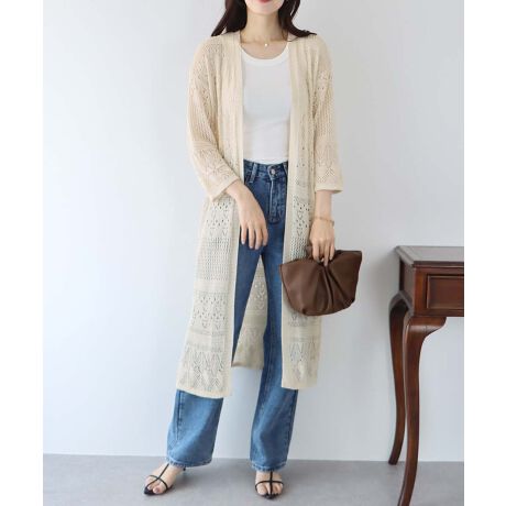 上品な肌見せができる夏にぴったりの透かし編みカーディガン。