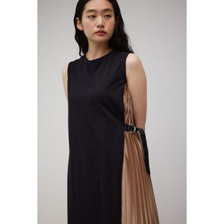 2023 Spring&Summer item 【KCON JAPAN 2023着用アイテム】 ・地厚な天竺素材とプリーツ加工素材のドッキングアイテムです。 ・AZULで毎年大人気のプリーツワンピースです。 ・サイドに布帛素材のプリーツデザインを施したワンピース。 ・異素材ドッキングのさりげないデザインがコーディネートを格上げします。 ・サイドのベルト部分をグログランテープにし、ブラックで統一ことにすることによってAZULらしさを取り入れました。 ・サンダルでもヒールでも合わせやすい絶妙な着丈になっています。