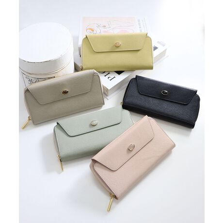 毎日使うお財布に天然石(一部練りを含む)をあしらい、日々の生活に彩りをプラスしてくれる「AMARYLLIS」シリーズ。質感にもこだわった牛革を使用し、キズが付きにくく耐久性にも優れたエンボス加工を施しています。カードが見渡せる手帳型タイプで使い勝手も良いです。