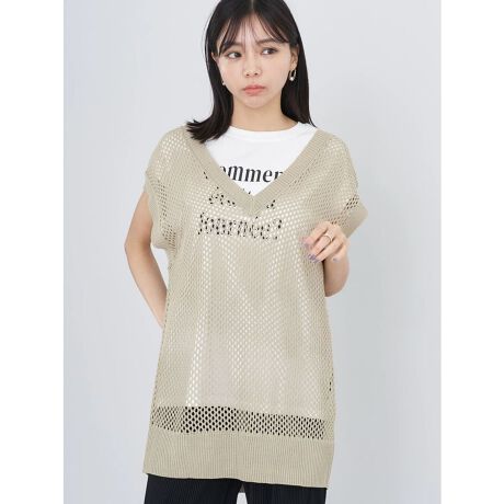 メッシュ編みでトレンドライクに仕上げたVネックベスト。