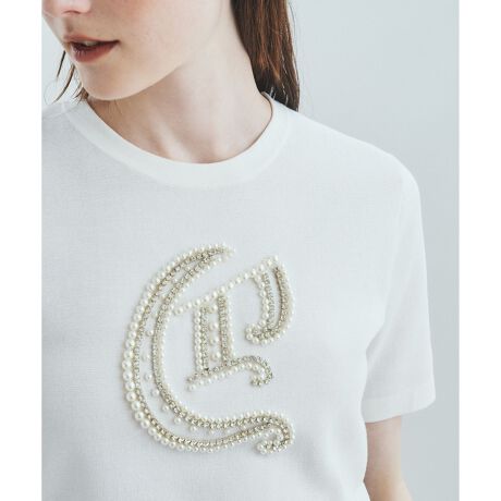 上質感があり柔らかく着心地の良いボディに、ラグジュアリーなビジュー刺繍を贅沢に入れて、大人っぽく上品な印象に仕上げました。カリグラフィーで使用される装飾的なゴシック様式のアルファベット「C」をモチーフにしています。アクセサリーなしでも顔まわりを華やかに演出し、特別感のある一枚に。Tシャツ感覚で着回していただけるので、スイッチシーズンはこの一枚で、涼しくなったらライダースやトレンチコート、ジャケットなどのインナー使いにもおすすめです。