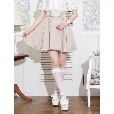 繊細なレースにリボンのレースアップを施して、愛らしさたっぷりに仕上げたスカート。