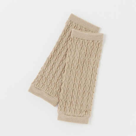 ジャカード編みでケーブル柄を表現したレッグウォーマーです。防寒や日よけ対策、ハイハイ時の膝の保護など用途に合わせてお使いいただけます。上下にゴムをほどこしているのでしっかりフィットし、ずれにくいのもうれしいポイントです。