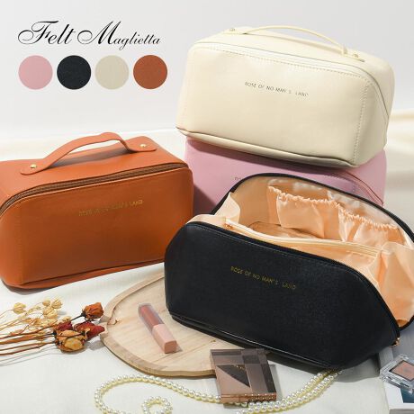 がばっと180度に開いて取り出し楽々な大容量メイクポーチです。