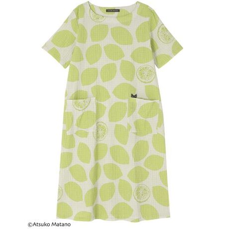 【ワンピース(5分袖)】クリエーター“俣野温子”氏がデザインする、甘くなりすぎない大人かわいいテキスタイルとカラーで、くつろぎ時間を楽しく過ごせるパジャマ&ルームウェア凹凸があるので肌ばなれがよく、夏にさらっとここちよい、ボイルシャーリング素材です。夏らしい檸檬の柄をプリントで表現しました。ポケットから顔をのぞかせている黒猫のアップリケがデザインのポイント。※アイテムによって柄の出方が異なりますのでご了承ください。【サイズ詳細】M:バスト107.0cm 着丈110.0cmL:バスト115.0cm 着丈110.0cmLL:バスト123.0cm 着丈111.0cm※出来上がり寸法を表示しております。※サイズ詳細の寸法には多少の差異がございます。
