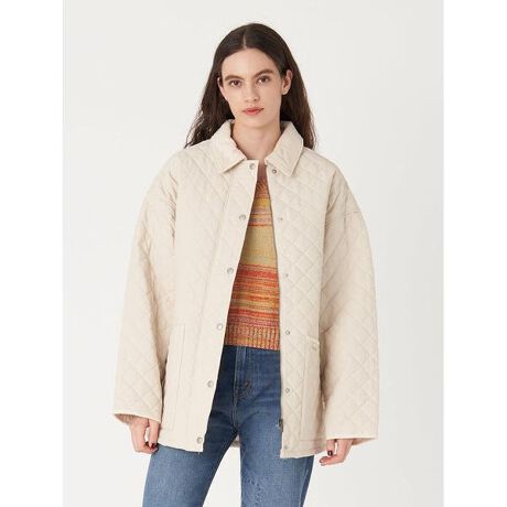 優しいカラーにデザインされたキルティングのコートが登場しました。シャツとコーチジャケットを兼ね添えたアイテム。長めのフィット、クラシックなポイントカラーが特徴のキルトシャツです。どんなボトムスとも相性抜群の一枚です。