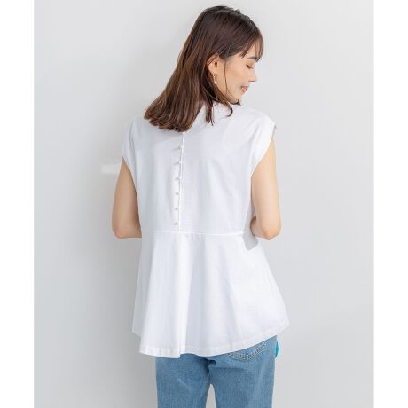 ■デザイン背中に並んだパール使いがアクセントの上品なフレンチスリーブTシャツです。ウエストダーツや切り替えでウエストをすっきり見せながら、裾にかけてほんのり広がるフレアシルエット。袖口タックやダーツで袖口に立体感が出る事で、腕周りをスッキリ見せてくれます。フェミニンな中にも袖口タックなど、少しモード感のあるディティールを取り入れているため、今年らしいこなれた印象に見せてくれるTシャツです。裾まわりのふんわりフレアシルエットは、ウエストイン・アウトどちらでもスッキリきまる分量感です。