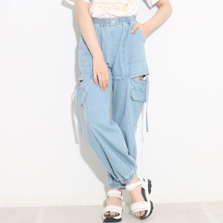 ゆるっとしたシルエットに、太もも部分がカットアウトされたデザインカーゴパンツです。