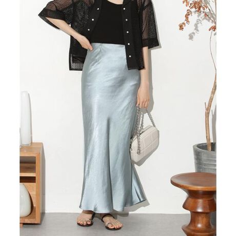 秋の気分を盛り上げるサテン素材のロングスカート。トップスにボリュームが出てくるこれからの時期に下半身をスッキリと演出してくれるIラインシルエット。てろっとした落ち感と程よい光沢感がコーディネートに華やかさをプラスしてくれるから、シンプルなトップスを合わせるだけでサマになります。