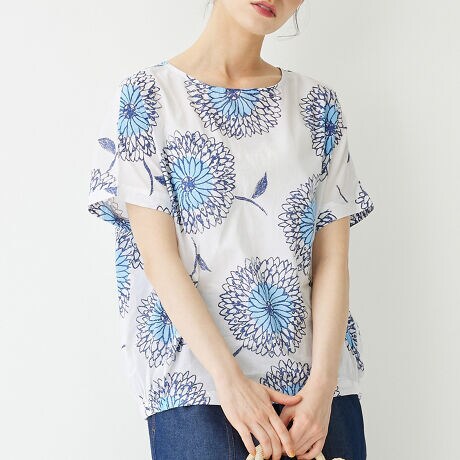 ・手書き風の大きな花柄プリントが特別感たっぷり。1枚取り入れるだけで装いをパッと華やかに見せてくれます。