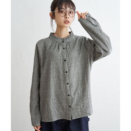 やさしい印象の凹凸感が可愛い定番ブラウス。