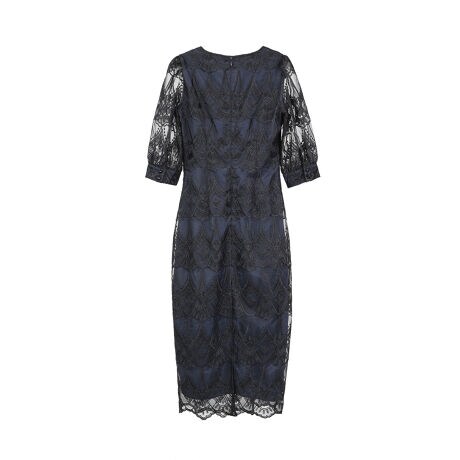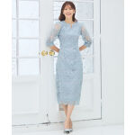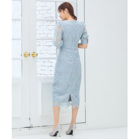 ドレス ワンピース タイト レース スカラップ ミモレ丈 袖付き