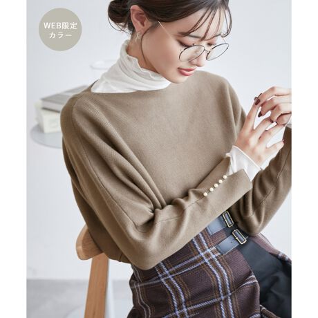 【新色追加】【WEB限カラー:グレー】マシュマロニット袖パールドルマンニット