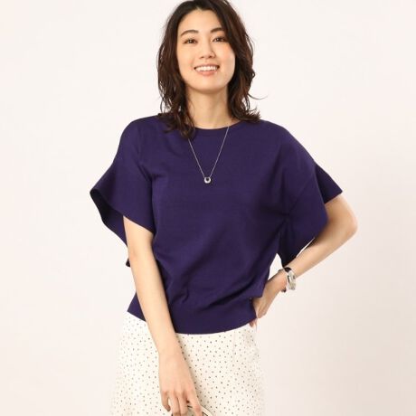 【ゆったり&涼しげ/晩夏/洗える】コットンポリエステル フレアスリーブニット