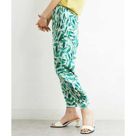大胆なプリントが目を引く、ウエスト総ゴムのイージーパンツ。腰回りにゆとりがあるので、幅広い方に履いて頂けるシルエットになっています。裾には裾幅を調節できるタブが付いているので、裾を細くシルエットを変えてシルエットの変化を楽しめます。40サイズは限定店舗展開です。36サイズはEC限定展開です。