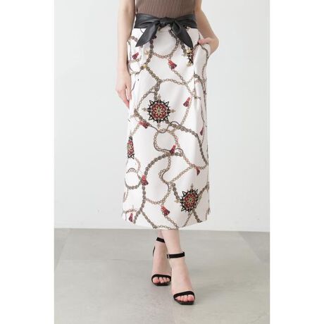 合皮ベルト付きスカーフプリントスカート
