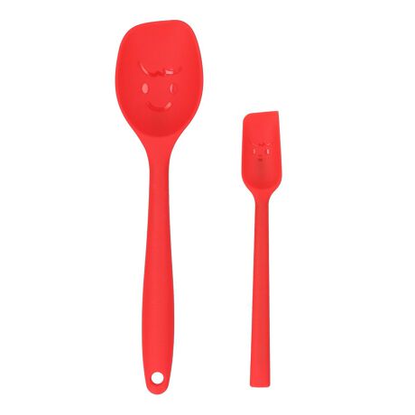 毎日の料理が捗る♪「これは便利!ラクラク調理スプーンセット」が新登場。【使い勝手ばっちりな2本セット】へらとお玉の中間のようなカタチ。用途に合わせて使い分けできる、大小2本セット。【柔らかなシリコン製】調理器具を傷つけることなく、安心して使える耐熱シリコン素材。手に馴染みやすい質感もポイント。【扱いやすいフラット形状】スプーンの先端は、すくいやすく固形物をほぐしやすいフラットな形状。【調理の全工程で活躍する調理スプーン】炒める、混ぜる、すくって盛り付ける♪全部これ1本でまかなえちゃう◎【下準備で活躍するロングスプーン】取る、混ぜる、すくう、塗る♪深さのある容器でも底までラクラク届いて、小回りの効くサイズ感。【直置きもOK】柄の裏に出っ張りが付いており、スプーンの先端を浮かせて直置き可能。キッチン台を汚すことなく、衛生的!