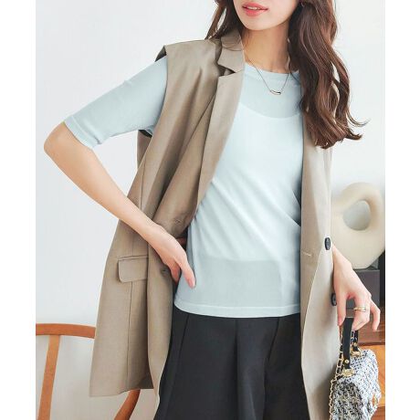 インナーにキャミソールを合わせて、暑い夏も乗り切れそう。