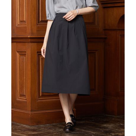 すっきりシルエットでオフィスコーデにも使える、優れた形状回復性が嬉しいタックスカート