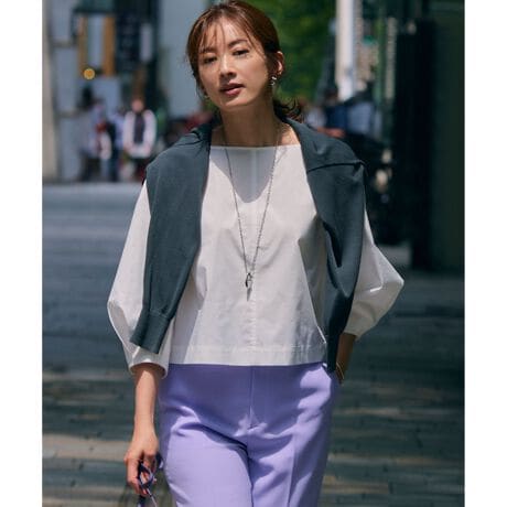 【一部店舗限定/洗える】ハイカウントウェザーストレッチ ボートネック コンパクト ブラウス