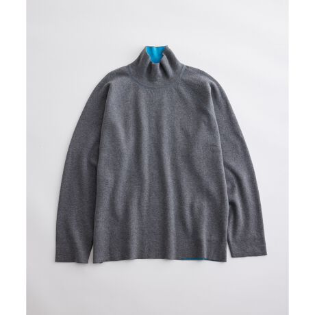 程よいゆとりのある身幅とフィットしすぎない首まわりのサイズとチクチク感のない柔らかな風合いが心地よいオフタートルネック。