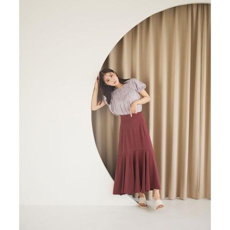 [design & styling]前後イレギュラーヘムのラウンドしたシルエットが動くたびゆらぎ着映えするポイント。今シーズンらしくアップデートしたマーメイドスカート。ウエストまわりはスッキリとシンプルにしながら、切り替え部分のフレアにボリュームを出しリッチに仕上げています。コンパクトなニットをあわせたスカート主役のコーディネートや、コンシャスブラウスをあわせてより華やかなコーディネートにも。デイリーにはもちろんちょっとしたお出かけシーンにもおすすめです。左ファスナーで着脱[fabric]とろみのある落ち感素材を使用しています。※裏地あり※モデルの着用画像の場合、光の当たり具合により、実際の色味と異なって見えることがございます。色味は、商品単体の画像をご参照ください。