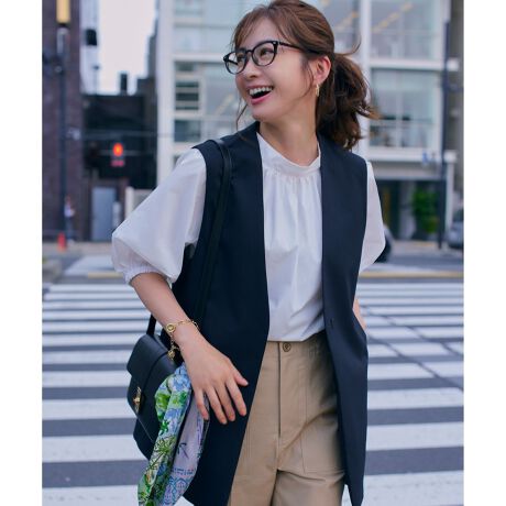 フォルムの出るランタンスリーブとボウタイがアクセントになった大人かわいいブラウス。首元にギャザーを入れ体のラインを拾いにくく繊細な印象に。サッと被るだけでサマ見えします。袖口はゴムなのでたくし上げて着るのも夏に向けてオススメです。前後着用可能な汎用性のある1枚です。同じシリーズのスカートと合わせてセットアップスタイルも可能です。展開カラーは、清潔感のあるホワイト(#001)と、爽やかな印象のターコイズブルー(#071)、女性らしい柔らかさを感じるベージュ(#033)、シックなブラック(#005)の4色展開です。