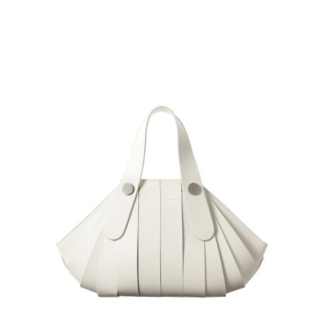 骨組みを表に出したような特徴的なデザインは、内袋をベルトで包んだ構造により、入れる物によってフォルムが変化します。