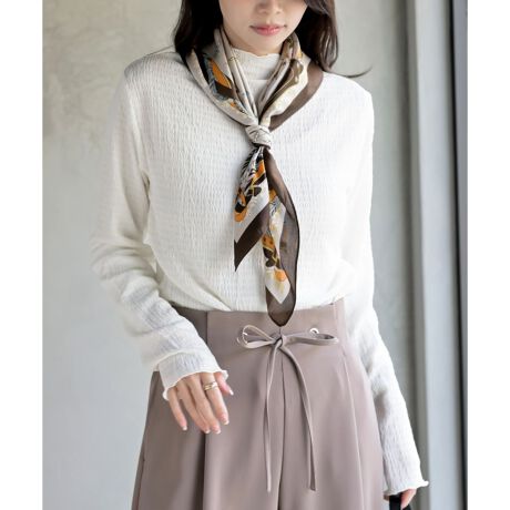 シンプルでいて女性らしいくしゅくしゅタートルカットソー