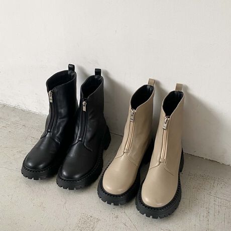 存在感のあるフロントジップがトレンドライクな一足。