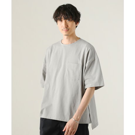 <Upscape Audience>日本製MVS天竺サイドスリットハーフスリーブTシャツ